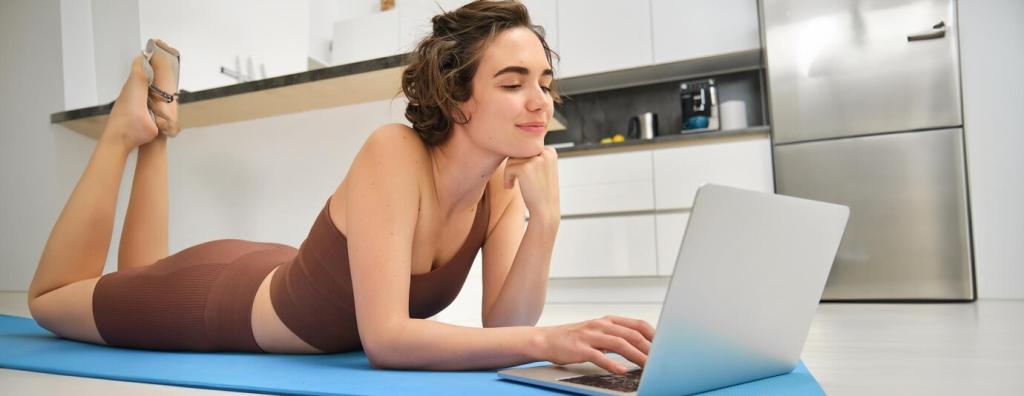 Reinige Matte und Griffe regelmäßig, prüfe Bänder auf Mikrorisse. Eine kurze Wartungsroutine verlängert Lebensdauer und verhindert unangenehme Überraschungen im Live-Workout. Poste deine Pflegetipps, damit alle profitieren.